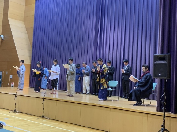 西園寺公望公が晩年に興津で生活や交流の様子を、全9幕の壮大な動読劇にて公演しています。SRAC俳優の奥野晃士仁さんの演出と主演、そして地元興津中学校の生徒や先生方の出演で大いに盛り上がりました。